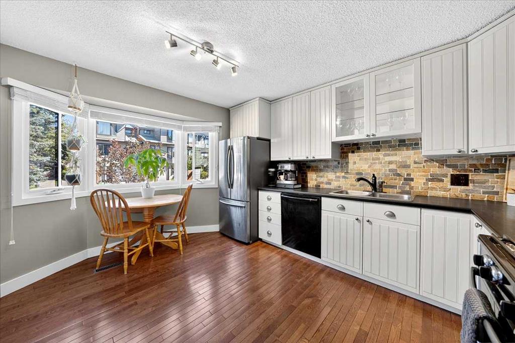 **OPEN HOUSE CANCELLED** Welcome to Glamorgan! Presenting a thoughtfully updated townhome in the heart of Glamorgan, one of Calgary’s most established and amenity-rich communities. This beautiful 3-bedroom, 2.5-bath home offers a functional & intuitive layout with over 1,300 sqft of comfortable living space, plus a private, fully fenced south-facing backyard—perfect for for gardening and enjoy the warm summer breeze. Inside, you’ll find a well-equipped kitchen boasts updated appliances, with cozy breakfast nook tucked in the bay windows. The adjacent dining room opens up beautifully into the spacious living area with a wood-burning fireplace feature. Upstairs are three generously sized bedrooms. The expansive primary bedroom comfortably fits a king-size bed with plenty of space for nights stands and dressers. The primary retreat flows into the updated private ensuite bathroom. Two incredibly sized secondary bedrooms share the updated main bathroom down the hall. The basement is partially finished to tuck away the laundry room and storage area. The basement is currently used as a cooled home gym but it can easily be finished to add an additional recreation area for movies night and family time. NOTABLE MENTIONS: New windows (2024) | Renovated kitchen | Updated appliances | Updated bathrooms | End-unit | Attached garage with full length driveway. Glamorgan is located close to Glamorgan School, MRU, and North Glenmore Park, with easy access to main roads like Richmond Road, Sarcee Trail, and Glenmore Trail. Whether you're a first-time buyer, growing family, or investor, #23, 23 Glamis Drive SW offers a fantastic layout, excellent location, and unbeatable value in a well-established community. Come see for yourself!