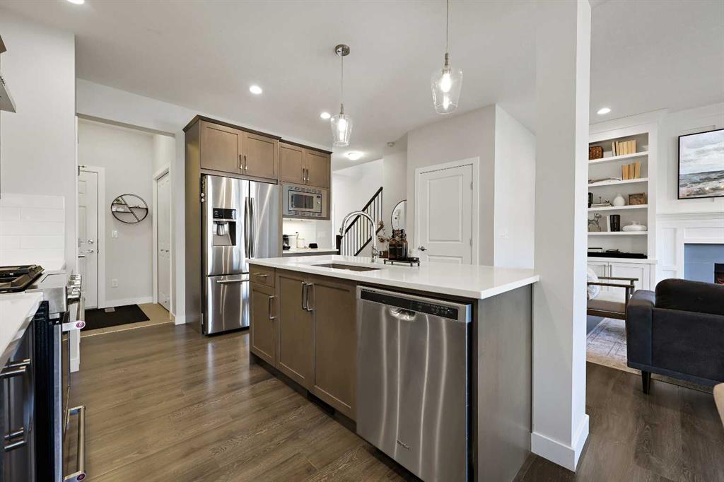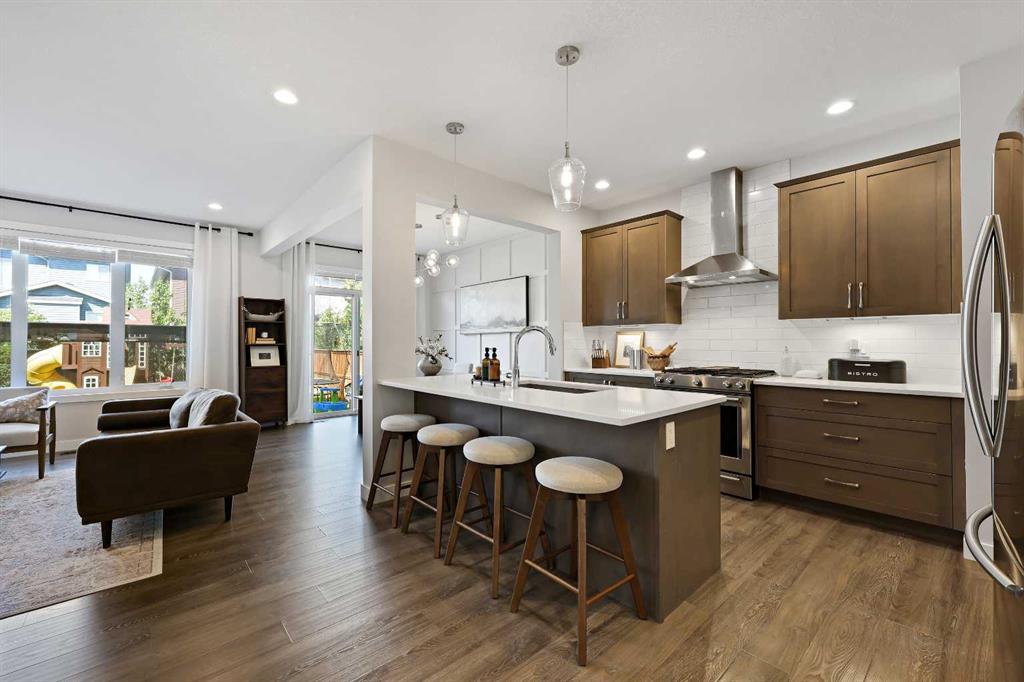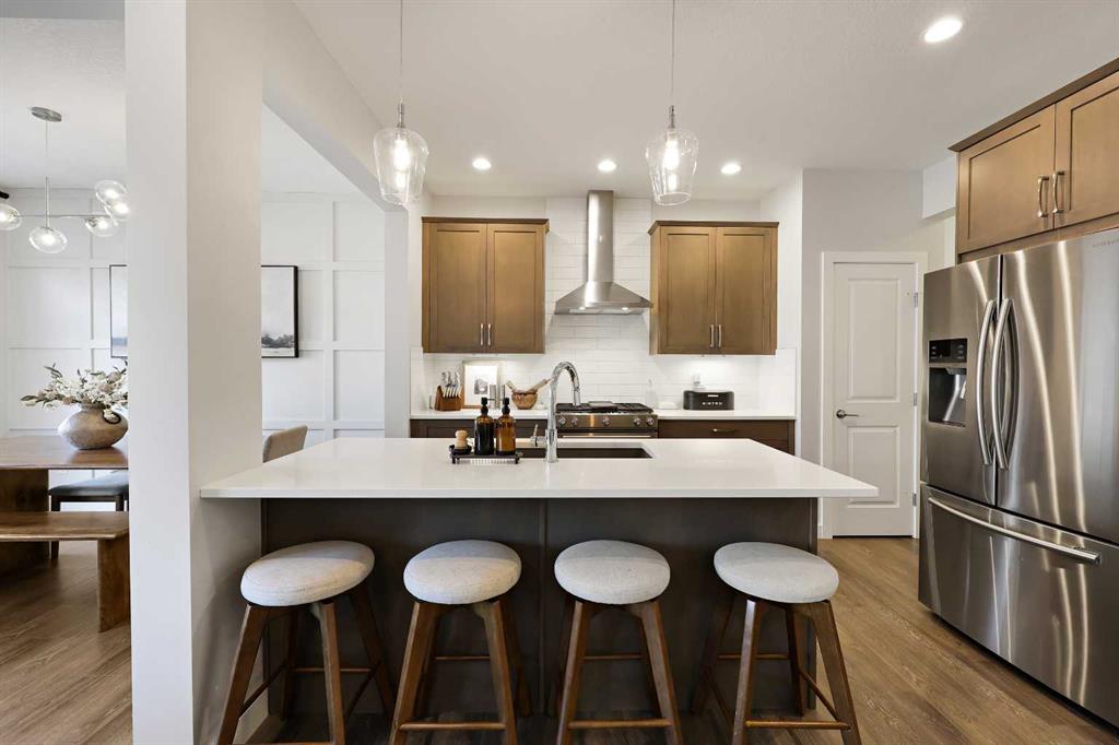 Welcome to 115 Bayview Circle SW, a beautifully upgraded family home in the desirable community of Bayview, Airdrie. This property combines thoughtful design, functional living, and a prime location close to schools, parks, and everyday amenities. Step inside to discover a bright and inviting layout with custom built-ins thoughtfully added throughout the home, including the living room, bonus room, and the primary bedroom’s walk-in closet—offering both style and storage. The open-concept main floor features durable luxury vinyl planks throughout. The gourmet kitchen is well-equipped with modern appliances and flows seamlessly into the bright, airy living room and dining area. What a wonderful way to enjoy delicious meals and movie nights with your friends and family. Upstairs, you will find a versatile bonus room with added custom cabinetry serving both fashion and function. The primary suite is designed with comfort in mind—complete with a private ensuite bathroom, and a walk-in closet optimized with custom built-in organization. Down the hall, two generously sized bedrooms share the 4-piece bathroom. The fully finished basement adds exceptional value, featuring a large family/recreation room, an additional bedroom, and a full bathroom, making it a perfect retreat for guests or extended family. Soak in the summer fun with central air conditioning and relax outdoors in the west-facing backyard, where you can take in sunny evenings and stunning Alberta sunsets. Take the hassle out of lawn care with the convenient underground irrigation system. The home shines bright all year round with dazzling soffit lights. The attached garage offers mounted storage solution and comes with a 240v EV charging port. Bayview is a family-friendly community offering scenic walking paths along the canals, playgrounds, and quick access to schools like Windsong Heights (K-8) and W.H. Croxford High School. Shopping, dining, and recreation options are only minutes away at Cooper’s Town Promenade, Sierra Springs, and CrossIron Mills. For commuters, access to QE2 Highway, Yankee Valley Blvd, and 8th Street SW ensures a smooth drive into Calgary or around Airdrie. This home truly checks all the boxes—style, function, and location. Book your showing today and experience the charm of Bayview living!